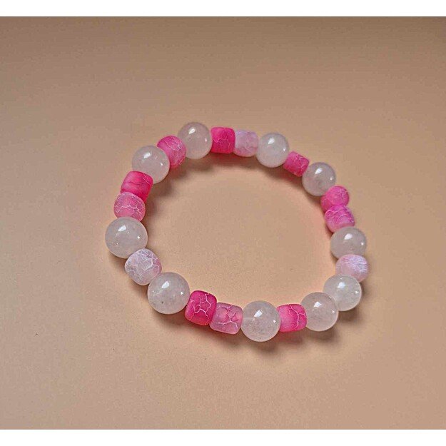 | Sudėtis | Silikoninė gumelė, natūralūs agato ir rožinio kvarco akmenys. Rankų darbo gaminys. |